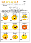 「Are you 〜?」「Yes, I am. / No, I'm not」の活動です。ビンゴゲームになっています。 |