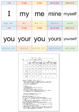 ※左のサムネイルの配色と下のファイルにあるカードの配色は異なるところがあります。実際に作って使用してから、独立所有格と再帰代名詞の色を変えた方がよいと判断しましたので、ここにあるファイルでは独立所有格と再帰代名詞の色を変えてあります。 |